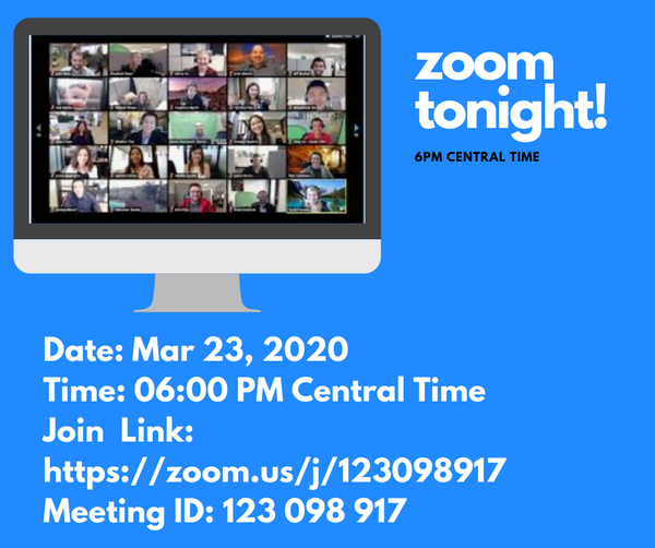 Zoom Meeting Tonight 6PM CENTRAL TIME- 💬 Let's Chat Online!