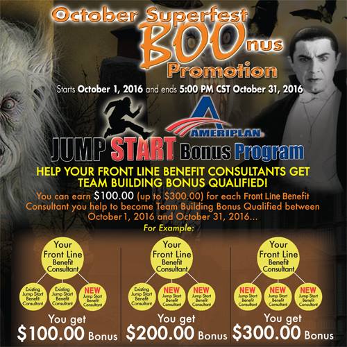 OCTOBER BOONUS PROMOTION! Get ready for AmeriPlan’s October SuperFest BOONUS Promotion that Begins October 1st Thru October 31st… MOUUHAHAHAHA!