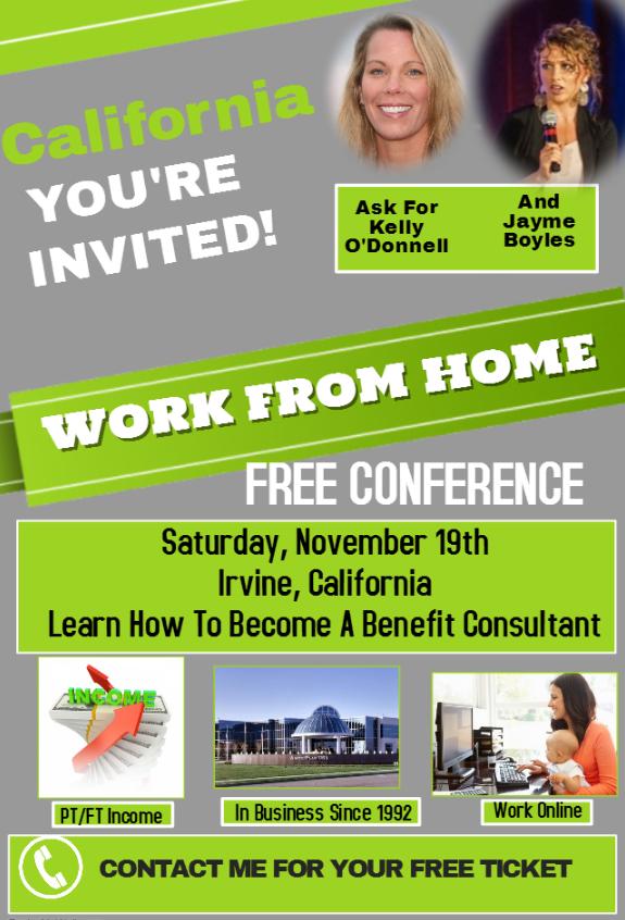 Our company is having a free work at home conference November 19th in Irvine, California.