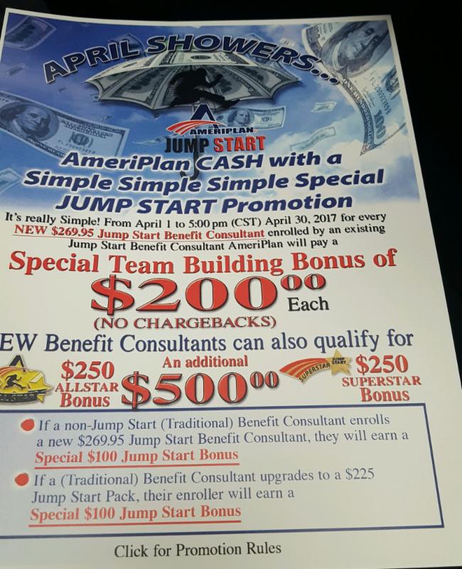 For the month of April AmeriPlan is given us an incredible opportunity to make unlimited bonuses (see details below).