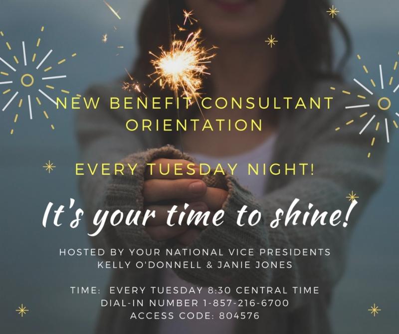New Benefit Consultant Orientation With Janie Jones. Tonight at 8:30 cst