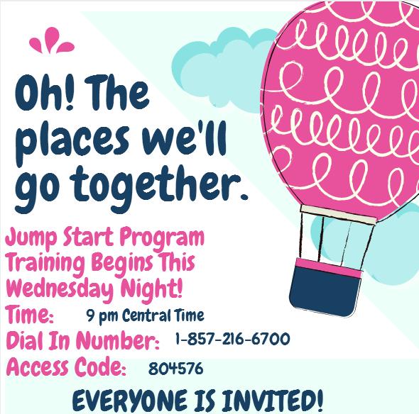 Below you will find details about our first Jump Start Training Session that will be held by National Vice Presidents, Kelly O'Donnell, Kristie DeGraw and Janie Jones. It's a good idea for everyone to attend the training because it will have great information that will benefit everyone.