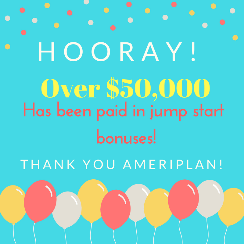 AmeriPlan launched the jump start bonus program on August 1st. They have paid over $50,000 in bonuses already! Lives are changing because of this great program. Can you imagine where we will all be in a year from now! Thank you AmeriPlan